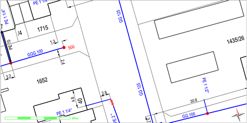 Die Fachschale Wasser bildet den Transport des Wassers von der Einspeisung bis hin zu den Entnahmestellen ab. Beim Zeichnen des Leitungsnetzes werden die unterschiedlichen Leitungsarten (Druck-, Versorgungs-, Zubringer- und Hausanschlussleitung) und deren Druckstufen (0…9) berücksichtigt. Mit Hilfe der Netzanalyse können z.B. bei einer Störung die Armaturen ermittelt werden, mit deren Hilfe der Wasserfluss zu unterbrechen ist, um einen bestimmten Leitungsabschnitt frei zu schalten, und welche Abnehmer davon betroffen sein werden. Die entsprechenden Daten können exportiert und zur Erzeugung von Serienbriefen an die Betroffenen genutzt werden.